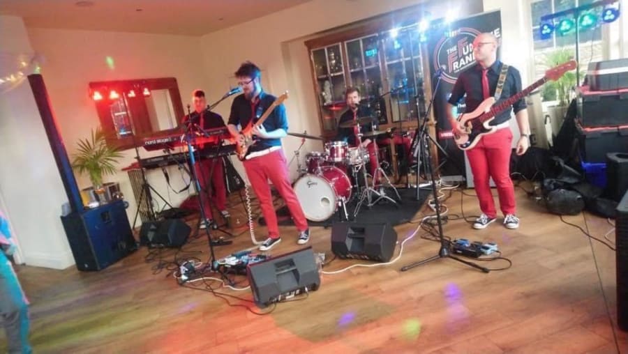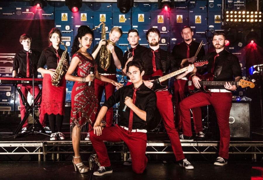 The Funtime Frankies are an award winning party band (function band), available to hire as a wedding band, corporate events band and special events live band. Available to hire as different line up's to suit all venue sizes and budgets, the Funtime Frankies have an electrifying, fun and energetic vibe that will flow through your event and take it to the next level. Made up of superb vocals and talented musicians and complete with their signature "red pants" - the music they play is guaranteed to cater for most events. The line up can comprise of lead guitar, bass guitar, keyboards, drums, lead vocalist and can also add a brass section, saxophone and a female singer. Please get in touch to discuss your event requirements - available to hire from a 3 piece up to a 9 piece band, with the 4 piece classic line up and 5 piece being the most popular size band.