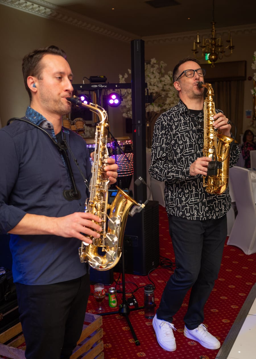 Our DJ will start the evening off with background music whilst guests arrive, and then after the evening buffet/bites to eat it's in to the party - 9:30pm-9:45pm is a good time to get the sax player on for the first set of 30mins (45mins if required) and then it's over to the DJ again till around 10:45pm and then the sax player will join the DJ for the second live set till around 11:15-11:30pm. Your DJ will finish the night with all your favourite party and end of the night songs before your guests make their way home - not forgetting to take their dancing shoes with them of course.