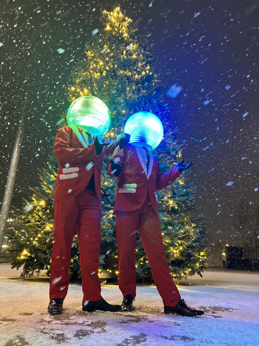 This pair of Christmas themed bauble heads light up and are the perfect entertainment for corporate events, themed parties, bars and nightclubs