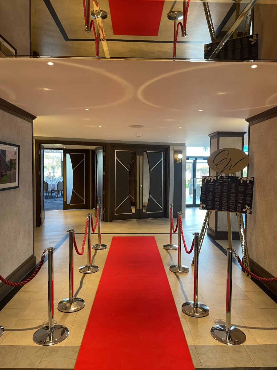 They say first impressions count and when planning an event it is important to remember this. We believe every event deserves the "red carpet treatment" and what better way to start your event off than with one of our red carpets complete with ropes and posts for either side (stanchions and ropes). Our 5 metre x 1 metre red carpets create the perfect entrance way and come complete with 3 posts and 2 red ropes for either side of the carpet.