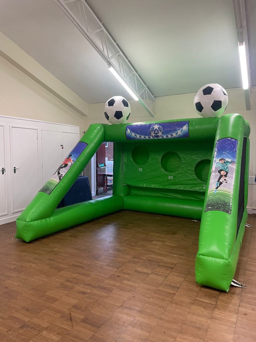 Our inflatable penalty shootout is great for indoors or outdoors. Either hire for a school sports hall or indoor hall, or outdoors on flat level grass. Prices to hire for a day hire £150 depending on venue location.