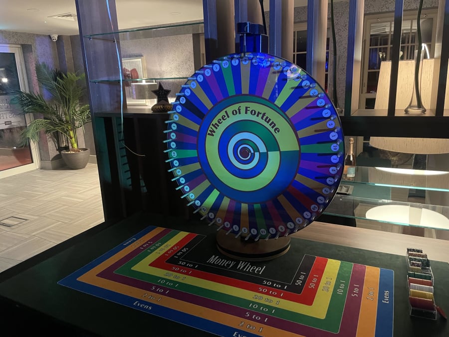 We usually recommend 2 tables is enough for events with up to 100 guests attending, for bigger events more tables would be required and would be charged at £175 per table with either additional blackjack and/or roulette tables or wheel of fortune.