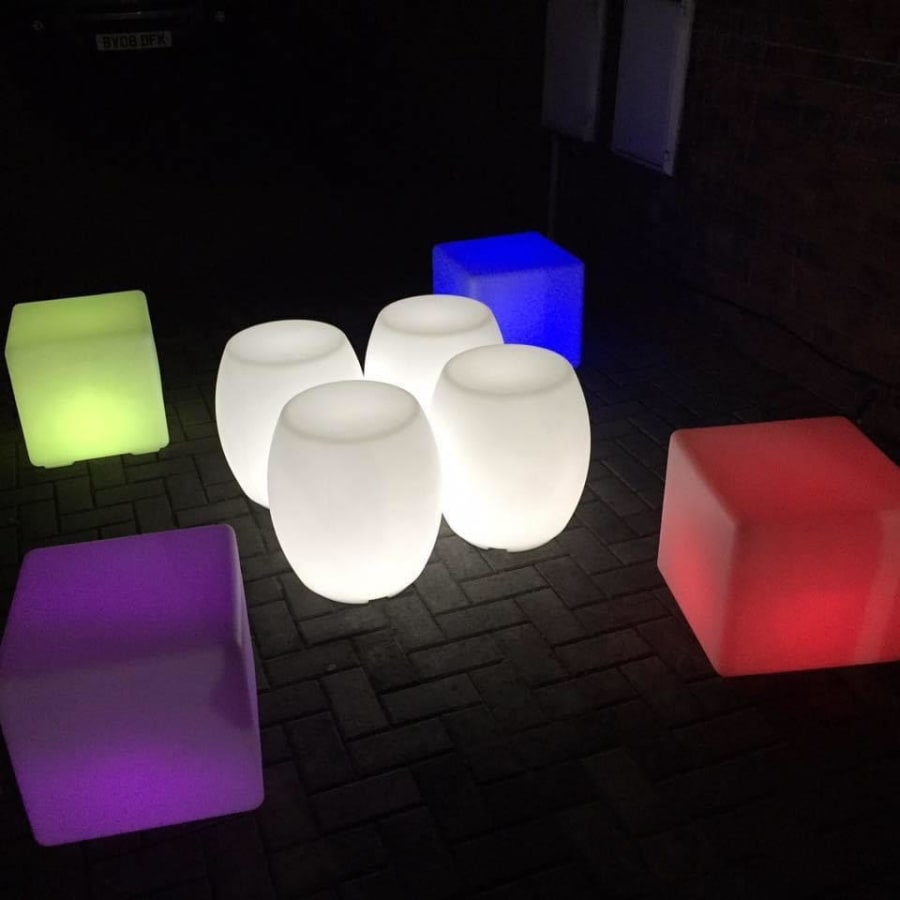 Our range of "light up" LED furniture can light up any event. Perfect for indoor or outdoor marquee/garden party events, our range of LED cubes and barrel tables look great an an array of events. Why not book our LED poseur tables for the event too and rather than having standard round banquet tables and chairs, opt for a more informal setup with our LED furniture options.