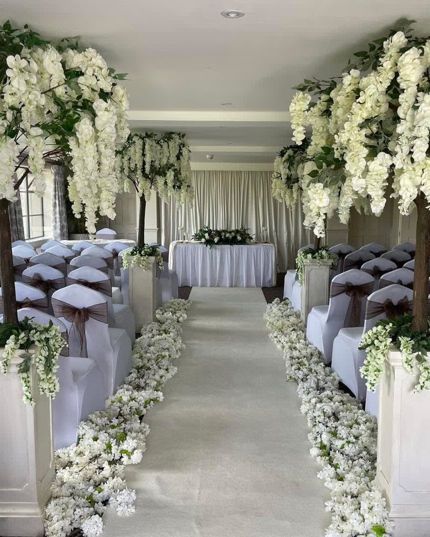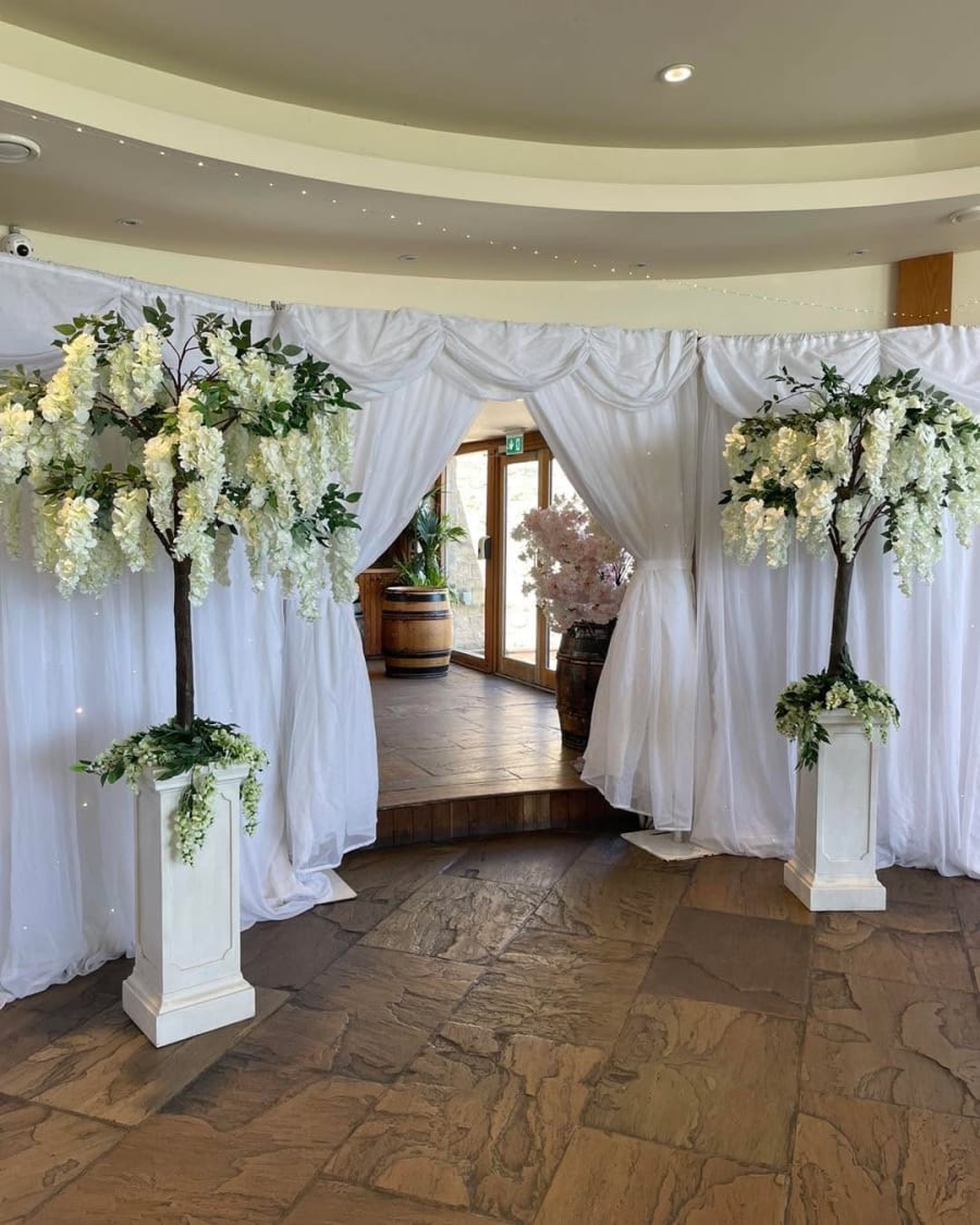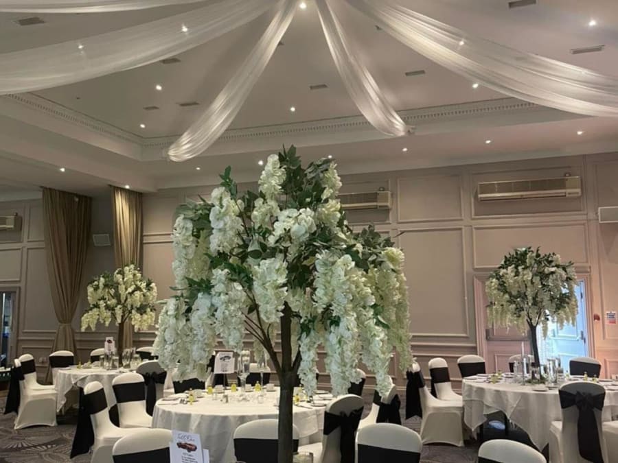 Our Wisteria Trees stand 1.8m tall and are simply beautiful. Perfect for weddings and country garden themed events - they make the perfect table centre. They also look great on plinths to stand either side of a ceremony aisle for the wedding ceremony, they can then be moved to the tables after as table centres, making this tree a cost effective solution for decorating your wedding.
