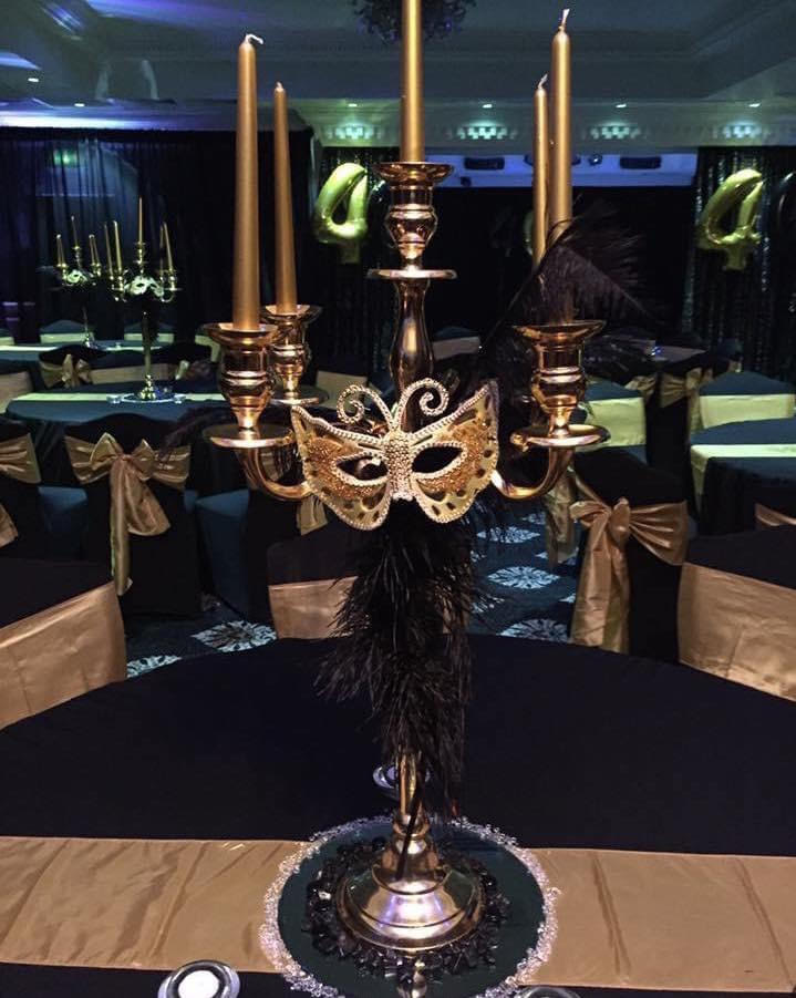 Masquerade themed Candelabra table centre piece for hire