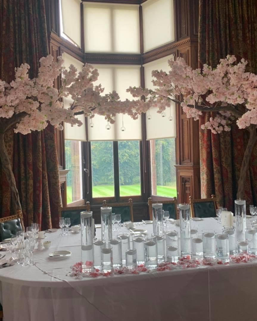Petals scattered between the cylinders to give a full effect