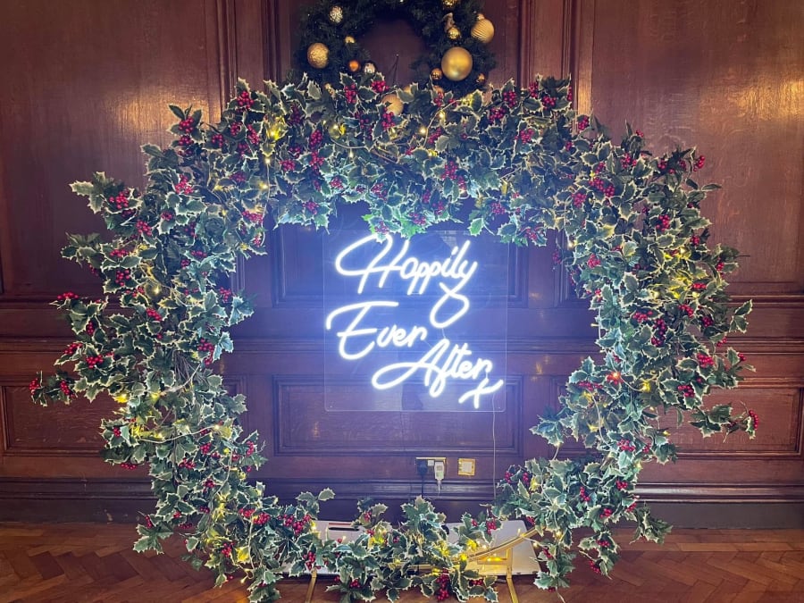 Our holly berry moongate is perfect for winter events, with or without a neon sign in the middle of the hoop, its great for weddings, Christmas events, corporate events and more