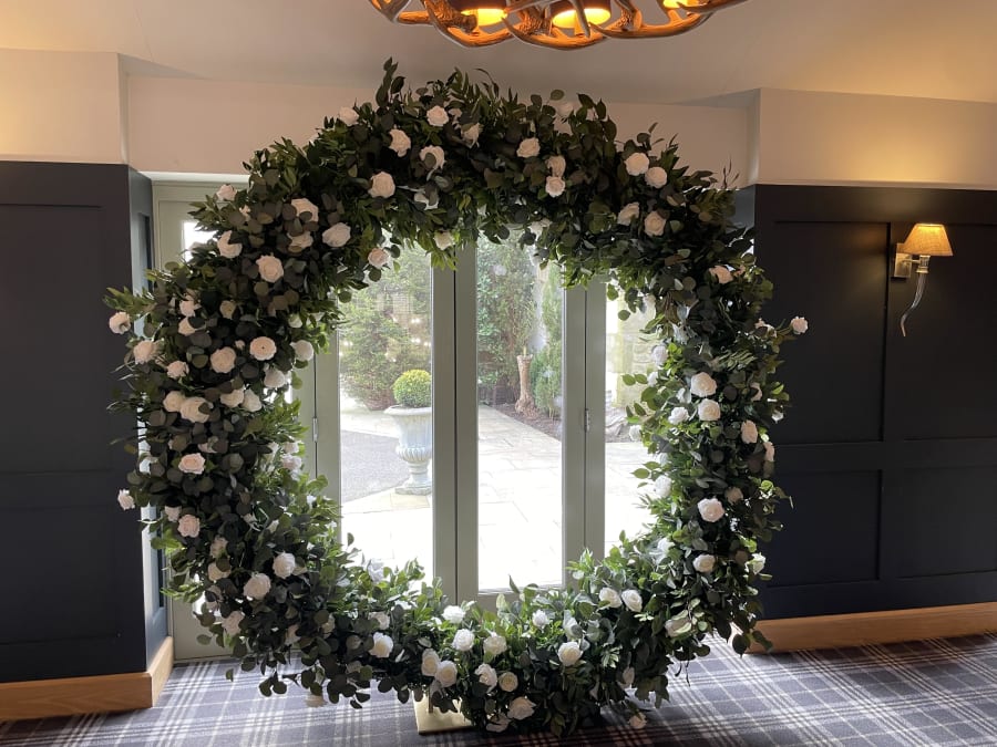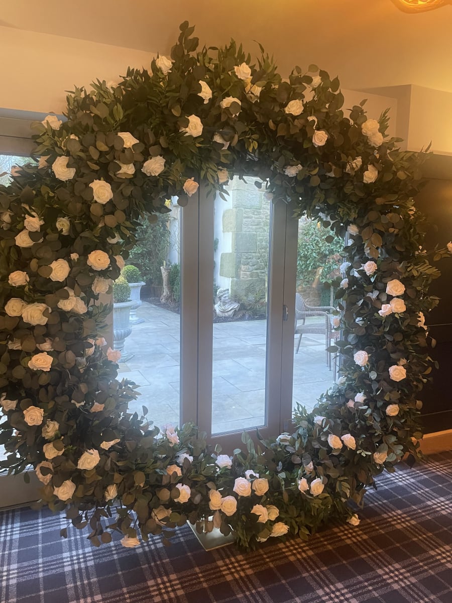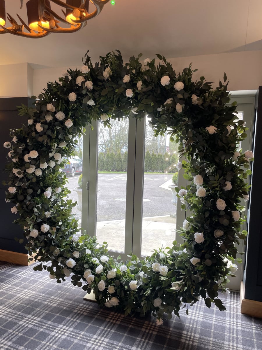 Our stunning floral moongate (full moon) is a must have for any luxury wedding or event. Perfect for weddings behind the top table or registrars table and then when the party get's going - just imagine the nice photos you can take in front of the hoop. Long lasting happy memories to be had when you hire our floral hoop.