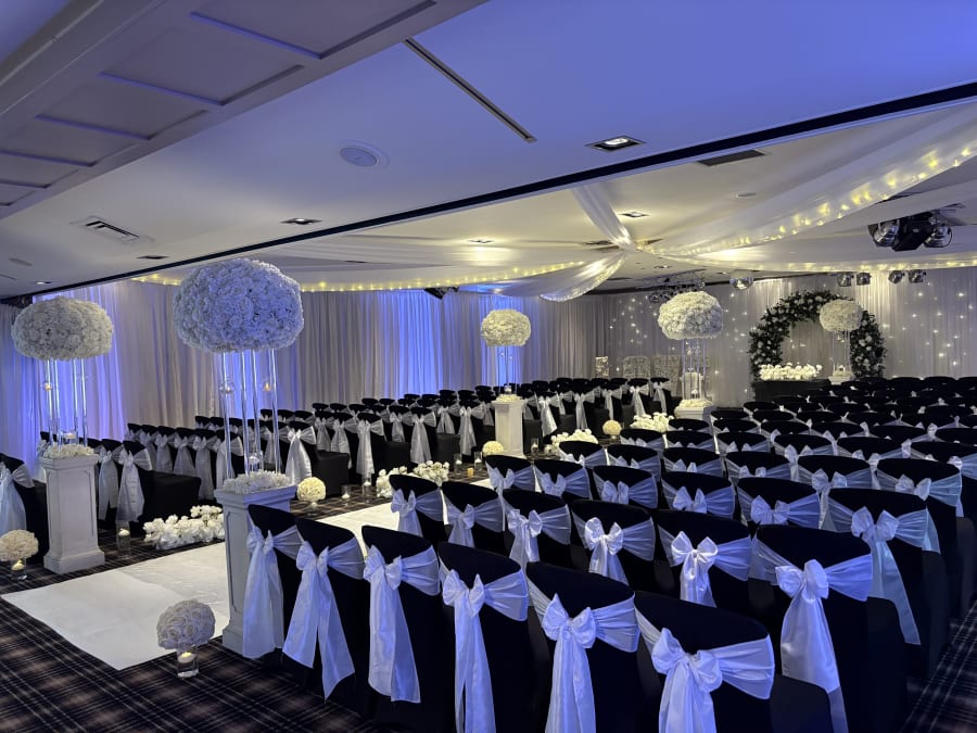 Our room draping can transform any room or space in to a visually stunning area. From full room draping - draping a social club room, Church/community hall or a hotel function room to creating an entrance way with our draping either side - the results are amazing. Freshly steamed on site and attached to our free standing pipe and base system (drapes do not attach to your walls), the only limitation to what we can do is your imagination.