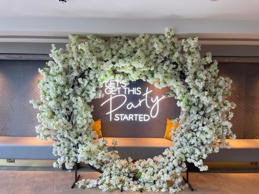Looking for ivory blossom? You have come to the right place!! Be the talk of the town when you hire our amazing ivory blossom hoop, complete with neon sign for the middle "happily ever after"