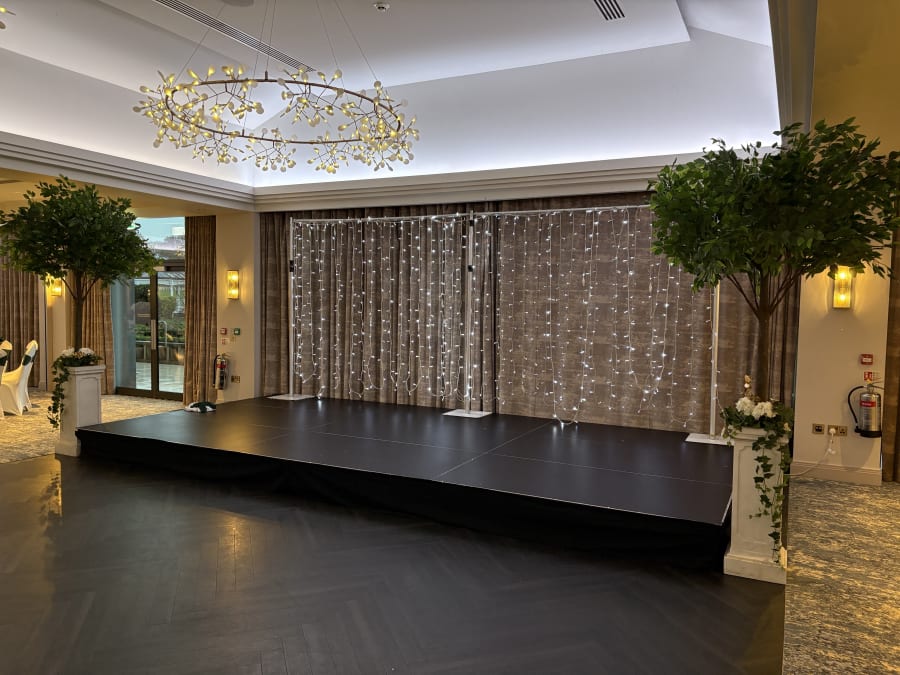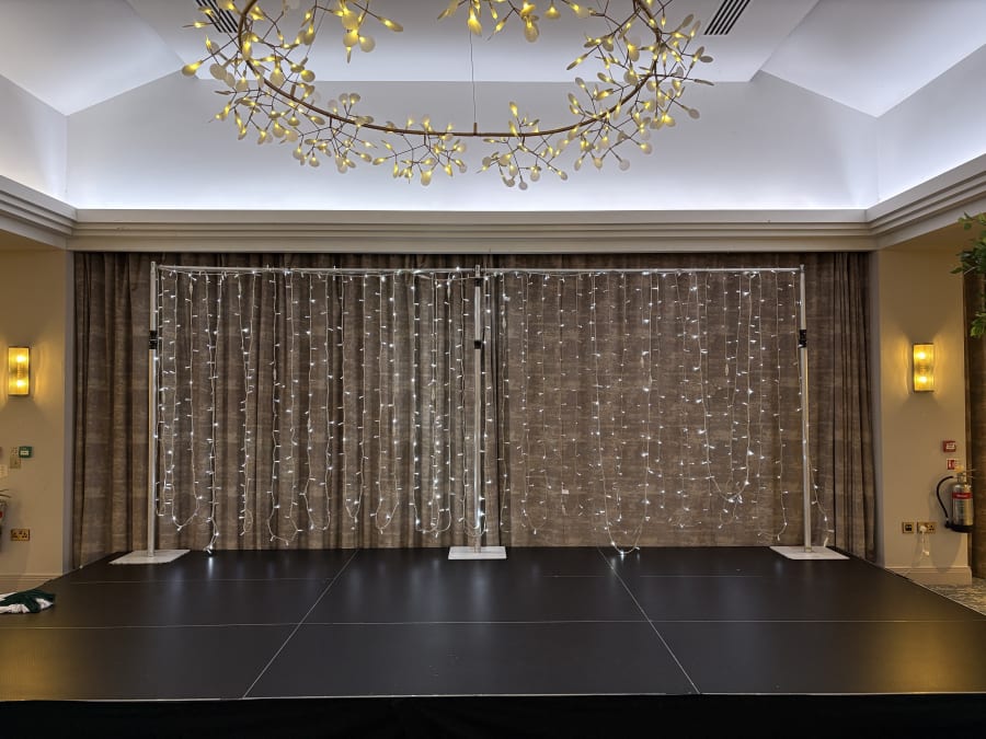 Our fairy lights backdrop is a different take on our white fairylit backdrop and creates a stunning light backdrop but without any white voile. We can create these backdrops in any size to suit any stage or room/area you would like dressing.